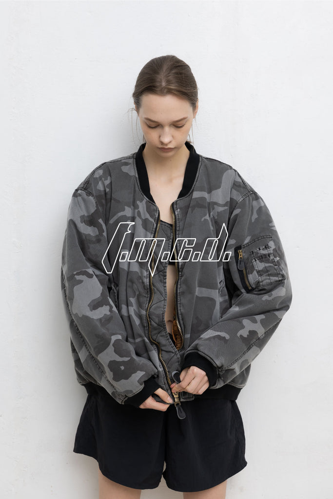 SUN FADED WASH DOUBLE FACE COTTON BOMBER JACKET - BLACK